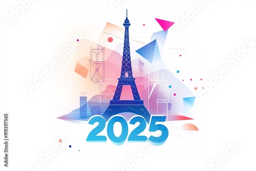 2024 and Rings, and celebratory colorful fireworks over the Eiffel Tower in Paris (2024), France