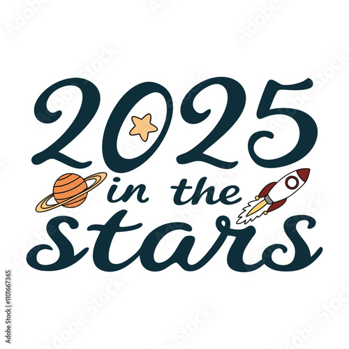 2025 In The Stars Typography Design Vector - Happy New Year 2025 Clipart illustration