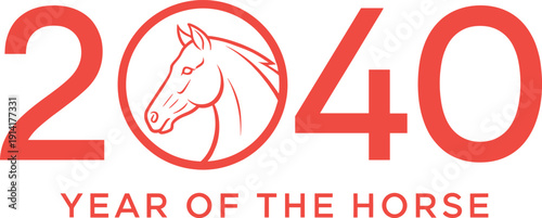 2040, horse, zodiac, chinese, new year, lunar, calendar, symbol, emblem, astrology, horoscope, festival, celebration, tradition, culture, asian, signs, animal, illustration, icon, vector, flat, minimal, design, poster, banner, greeting, holiday, typography
