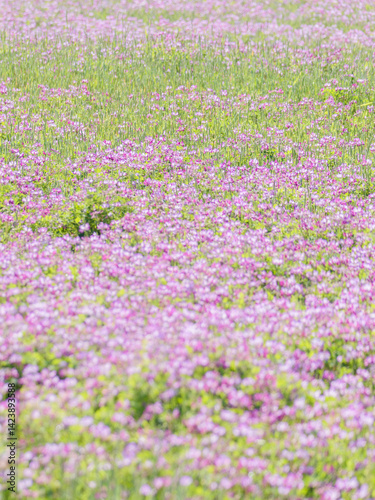 蓮華草のピンク色の花が一面に広がる23