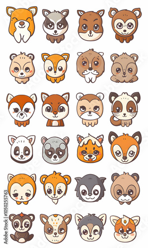 cute, cartoon, animal, face, icon, illustration, character, furry, wildlife, fox, raccoon, cervid, panda, bear, adorable, vector, happy, funny, friendly, nature, wild, design, pattern, graphic, clip art, digital, art, set, collection, sticker, print, icon, symbol, mascot, logotype, image
