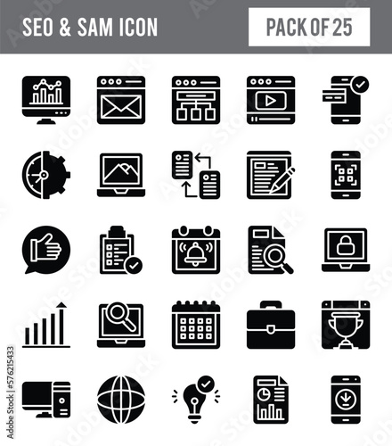 25 SEO And SAM Glyph icon pack. vector illustration.