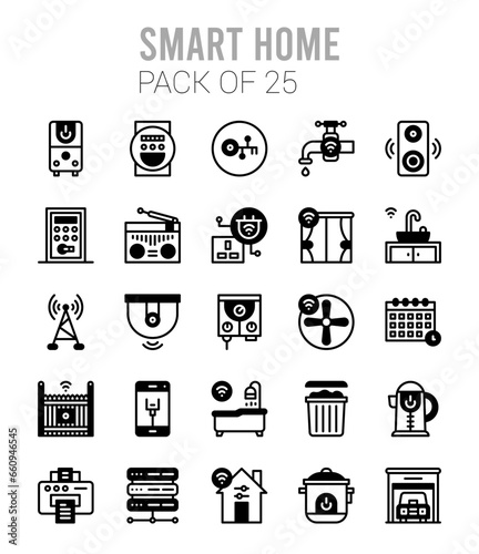 25 Smart Homes Lineal Fill icons Pack vector illustration.