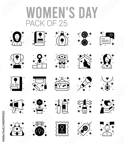25 Women's Day Lineal Fill icons Pack vector illustration.