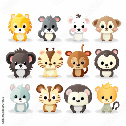 animal, cartoon, set, vector, dog, baby, cat, animal, icon, illustration, lion, tiger, cow, bear, zoo, rabbit, cute, pig, elephant, panda, horse, collection, character, giraffe, sheep, head, fun, pet