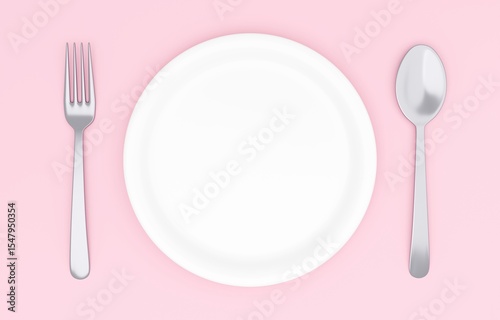 dish, plate, dish, spoon, fork, cutlery, meal, table, three-dimensional, solid, background, background, frame, frame, copy space, blank space, banner, illustration, design, graphic, poster, dish, eatery, food and drink, hollow, aerial, live, table, circle, yen, unmanned, pretty, sweet, real, white, pink