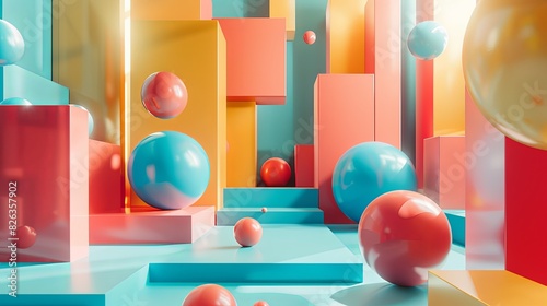 3D abstract geometric shapes in bright colors