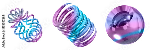 3D Abstract Shape Objects, 3d rendering metallic gradient shape design element, futuristic, shiny design