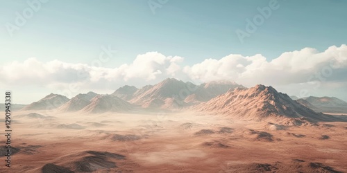 3d background minimalistic mockup with space for text, high-altitude plateau with rich earthy tones and soft clouds above