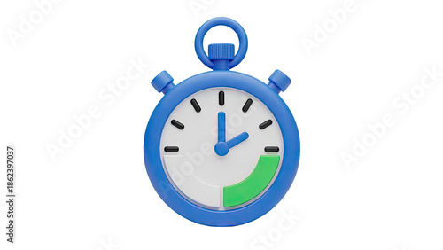 3D Blue Stopwatch Icon with Progress Indicator
