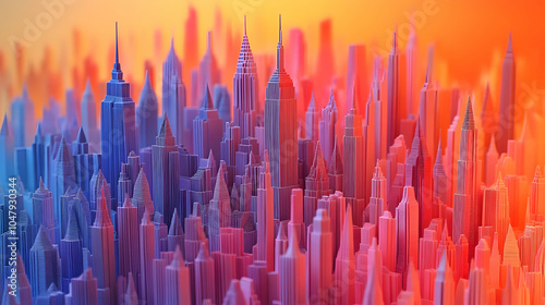 3D Cityscape Illustration with Purple and Red Skyscrapers