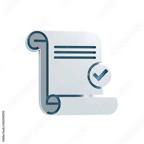 3D Contract Document Icon with Check Mark on Isolated Transparent Background