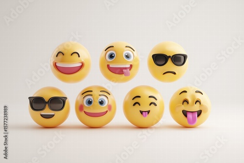 3D Emoji Mood Pack: 8 Cute Expressions on White Background for Social Media Day, Universal Digital Stickers for Psychology, Streaming & Business