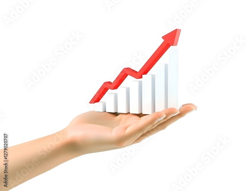 three-dimensional, hand, sale, chart, profit, growth, finance, business, success, economy, investment, increase, progress, statistic, marketing, commercial, corporate, bar, financial, economic, revenue, trade, visualisation, isolated, white