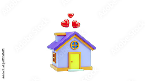3D House with Hearts Floating - Love and Home Concept