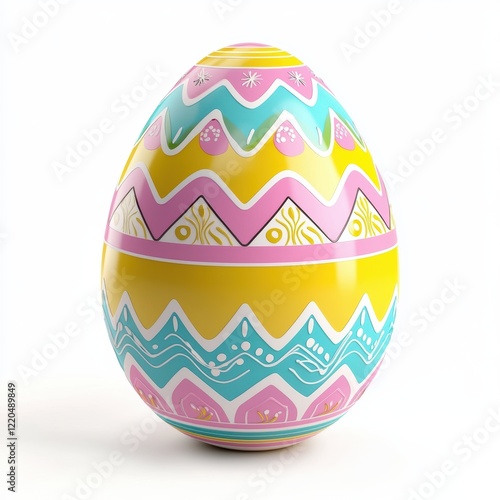 3D icon cartoon Easter egg with colorful patterns isolated on a white background