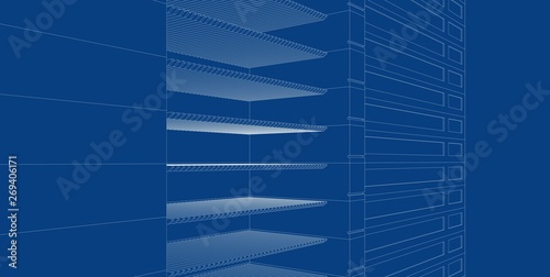 3D illustration architecture building perspective lines.