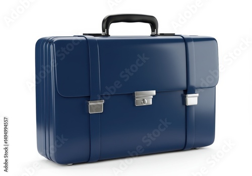 3D Illustration of Blue briefcase with silver clasps isolated on white background