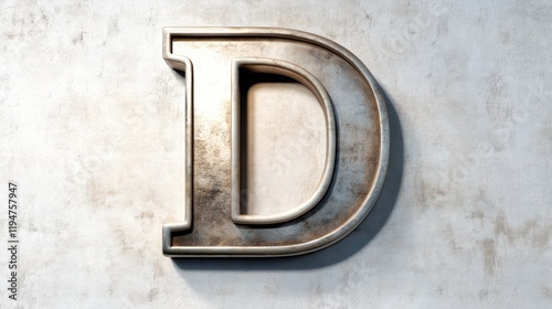 3D letter D rendered in high detail, surrounded by a seamless solid backdrop, realistic lighting and sharp textures,