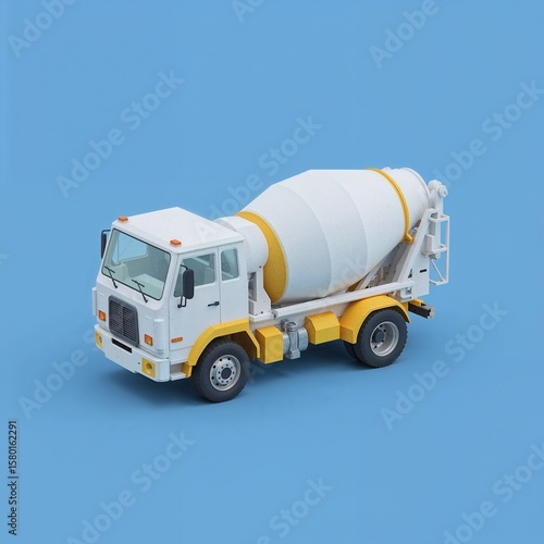 "3D Low-Poly Cement Mixer Truck with Yellow Accents and Blue Background"