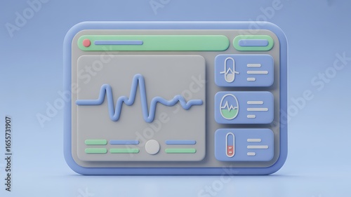 3D Medical Data Monitoring Interface Displaying Patient Health Information and Vital Signs with Pastel Color Palette