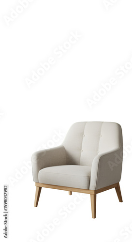 isolated, armchair, chair, furniture, interior design, modern, comfortable, living room, home decor, upholster, fabric, beige, wood, leg, single seater, seat, cushion, relaxation, lounge, minimalism, contemporary, house, apartment, decor, style, interior, sitting, rest, comfort, design, white background, realistic, digital artwork, rendering, clean, simple, elegant, home, lifestyle, room, cosy, interior decoration, product