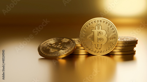 3D render Bitcoin cryptocoin cryptocurrency growth of tech companies blockchain, abstract illustrate gold coin luxury copyspace background growth graph of trending rising value digital currency price