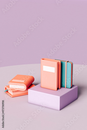 three-dimensional, background, blue, book, cartoon, collection, cover, design, education, graphic, illustration, isolated, learning, literature, modern, notebook, pattern, pink, reading, render, school, signs, three-dimensional, violet