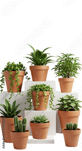 3D Render: Potted Houseplants Collection on White