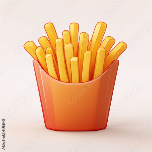 3D Rendered Cute French Fries – Cartoon Material on Clean Background