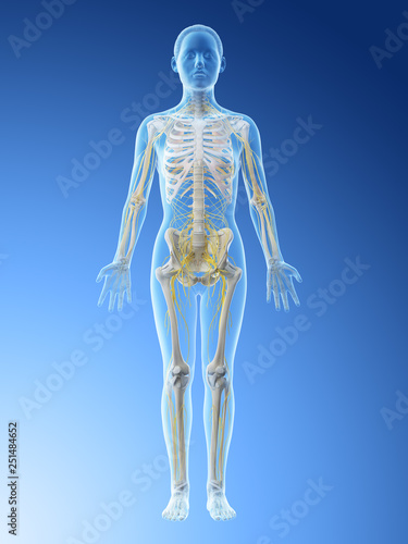 three-dimensional, rendering, graphic, illustration, artwork, science, biology, medicals, human, anatomy, body, anatomical, health, organ, inside, internal, transparent, female, woman, brain, cerebra, cerebellum, cerebral, nerve, nervous, system, blue, frontal, anterior