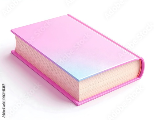 three-dimensional, rendering, book, hardcover, pastel, pink, blue, gradient, colours, transition, glistering, sparkle, shimmer, edge, page, closed, object, isolated, white background, photorealistic, digital artwork, illustration, graphic design, creative, modern, minimalist, clean, elegant, simple, visual, concept, idea, cognition, story, reading, learning, education, literature, fiction, non-fiction, textbook, novel, journal, diary, collection, library, archive