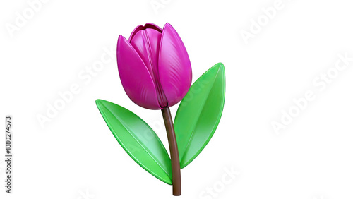 tulip, flower, pink, magenta, green leaf, botanical, floral, spring, bloom, stem, plant, isolated, stylised, illustration, graphic, decoration, symbol, elegance, beauty, nature, garden, art, smooth, glossy, clean, simple, minimalist, digital artwork, concept