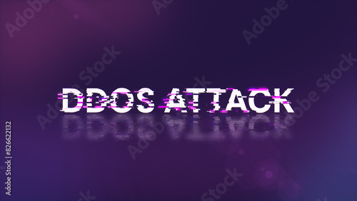 3D rendering ddos attack text with screen effects of technological glitches