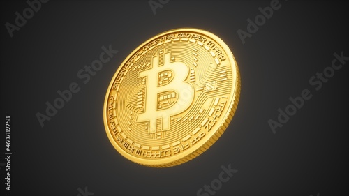 3D Rendering Golden Bitcoin isolated on dark background