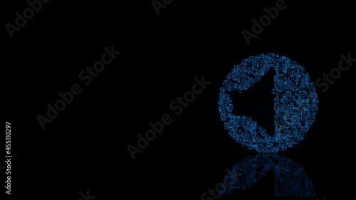 3d rendering mechanical parts in shape of symbol of speaker isolated on black background with floor reflection