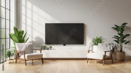 room, television, home, decoration, interior, white, house, modern, empty, vintage, plant, wide, wooden, wall, background, design, three-dimensional, frame, wood, table, light, space, concept, living room, architecture, creative, window, lifestyle, furniture, floor, apartment, television, decor, parquet, render, armchair, contemporary, shelf, unit, blank, cabinet, comfortable, cosy, elegant, indoor, living, lounge