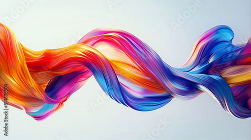 3D rendering of a colorful twisted ribbon in motion on a light background, smooth multicolored wave shapes, smooth curves. Generative AI