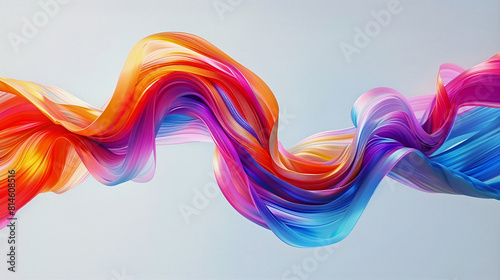 3D rendering of a colorful twisted ribbon in motion on a light background, smooth multicolored wave shapes, smooth curves. Generative AI