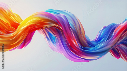 3D rendering of a colorful twisted ribbon in motion on a light background, smooth multicolored wave shapes, smooth curves. Generative AI
