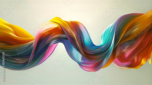 3D rendering of a colorful twisted ribbon in motion on a light background, smooth multicolored wave shapes, smooth curves. Generative AI