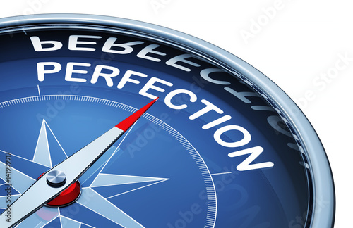 3D rendering of a compass with the word perfection
