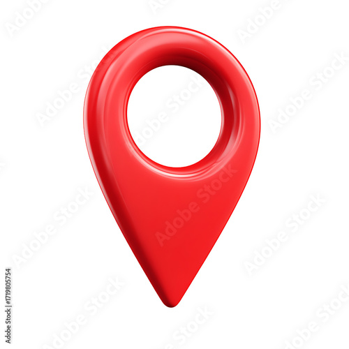 3D Rendering of a Glossy Red Location Pin : Symbolizes navigation maps directions and finding places Isolated against transparent background