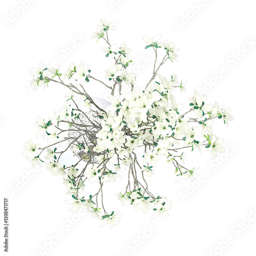 3D rendering of Cornus officinalis in pot isolated on transparent canvas from top view
