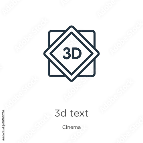 3d text icon. Thin linear 3d text outline icon isolated on white background from cinema collection. Line vector 3d text sign, symbol for web and mobile