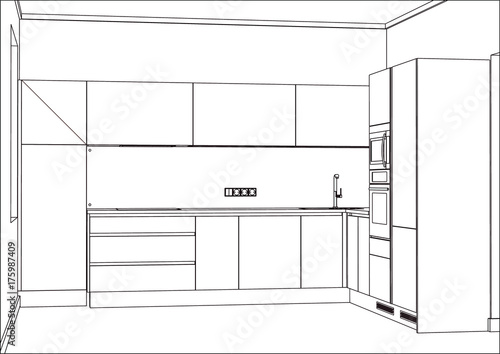 vector, kitchen, furniture, interior, appliance, apartment, expensive, white, business, plan, european, architectural, drawer, contemporary, commercial, luxury, graphic, designer, digital, idea, cabinet, modern, illustration, detailed, decorative, design, architecture, vignetting, classic, scandinavian, draw, elegance, original, architect, beautiful, indoor, domestic, oven, comfortable, construction, graphical, graphic design, interior design, storage, illustrator, home, floor, cupboard