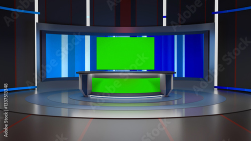 3D Virtual TV Studio News, Backdrop For TV Shows .TV On Wall.3D Virtual News Studio Background,3d illustration