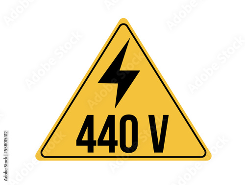 440 volts icon. Yellow board with warning of high voltage and electric shock. Vector isolated on white background