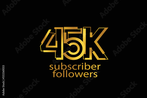 45K, 45.000 subscribers or followers blocks style with gold color on black background for social media and internet-vector