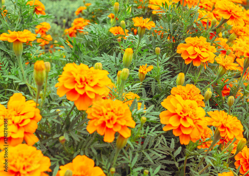 marigold, background, landscape, copy space, material, flower, nature, yellow, plant, orange, flowering, beauty, floral, pigmentation, lovely